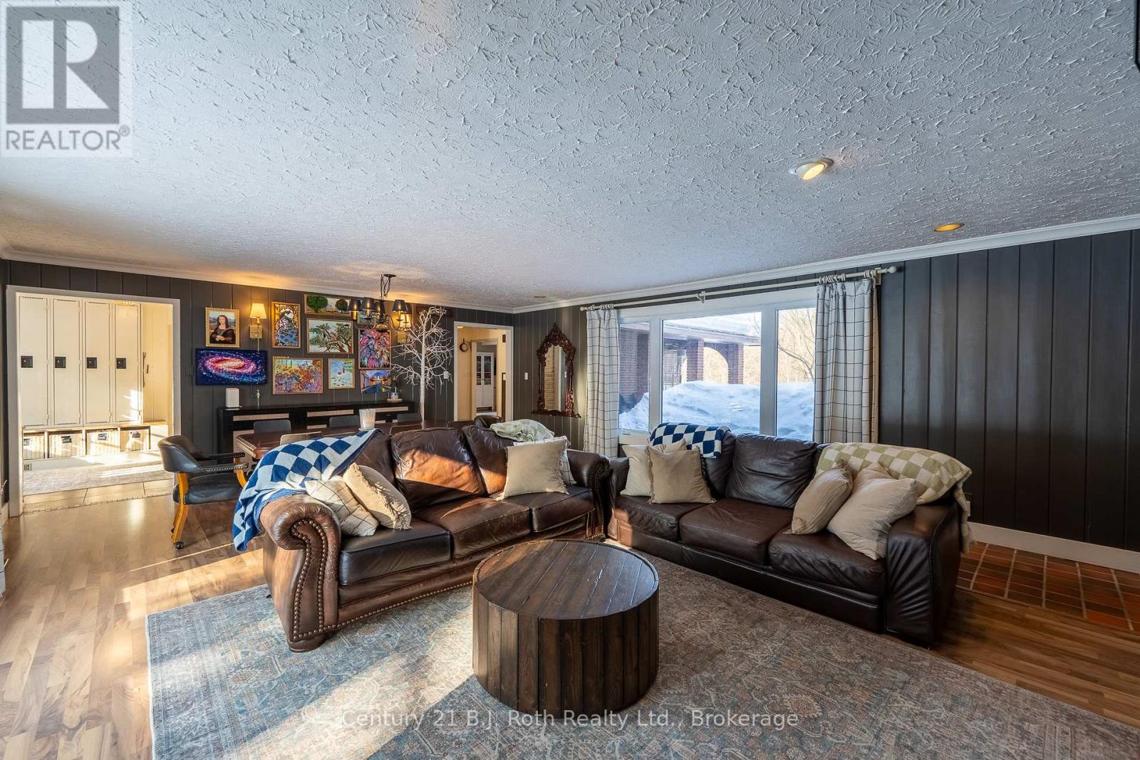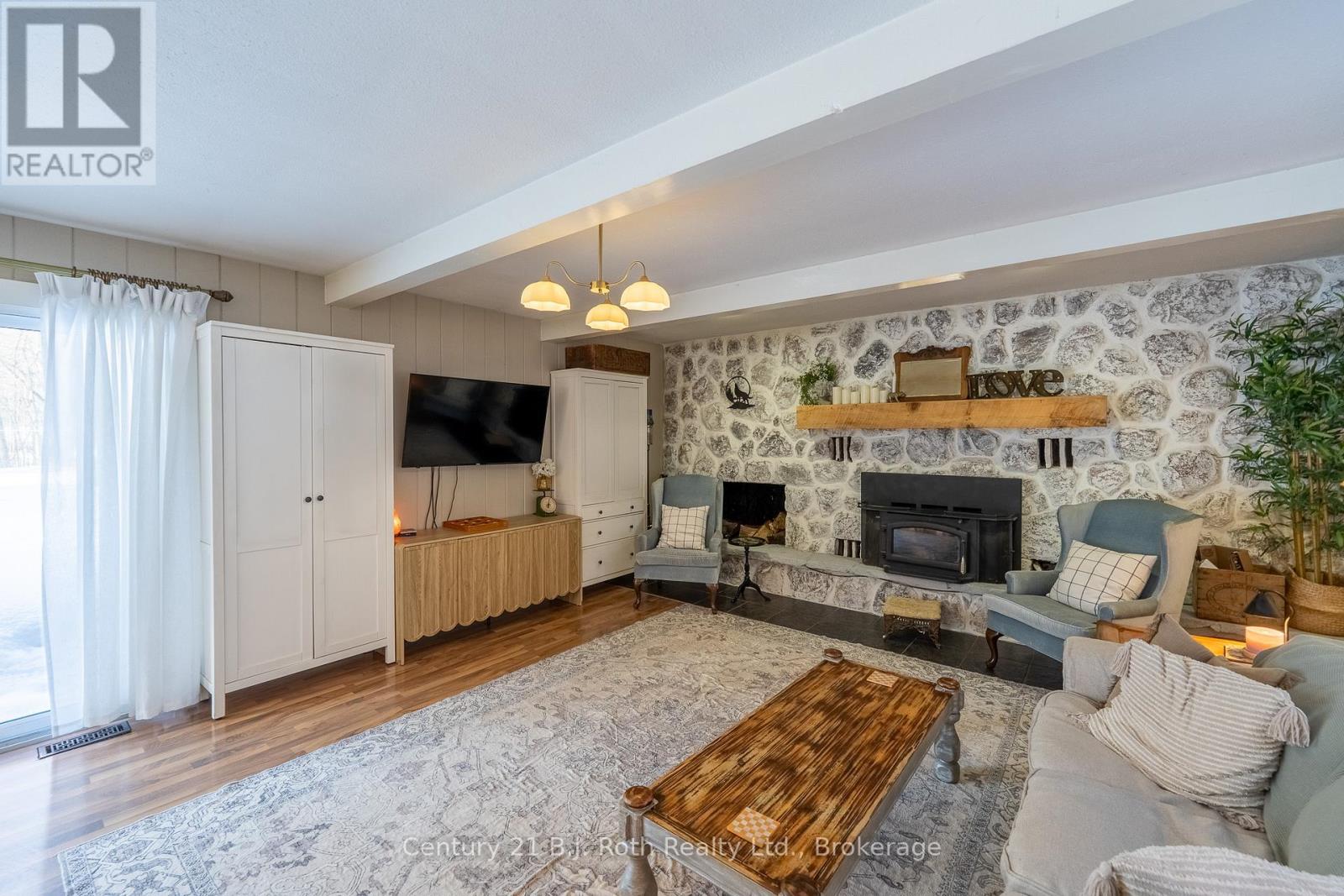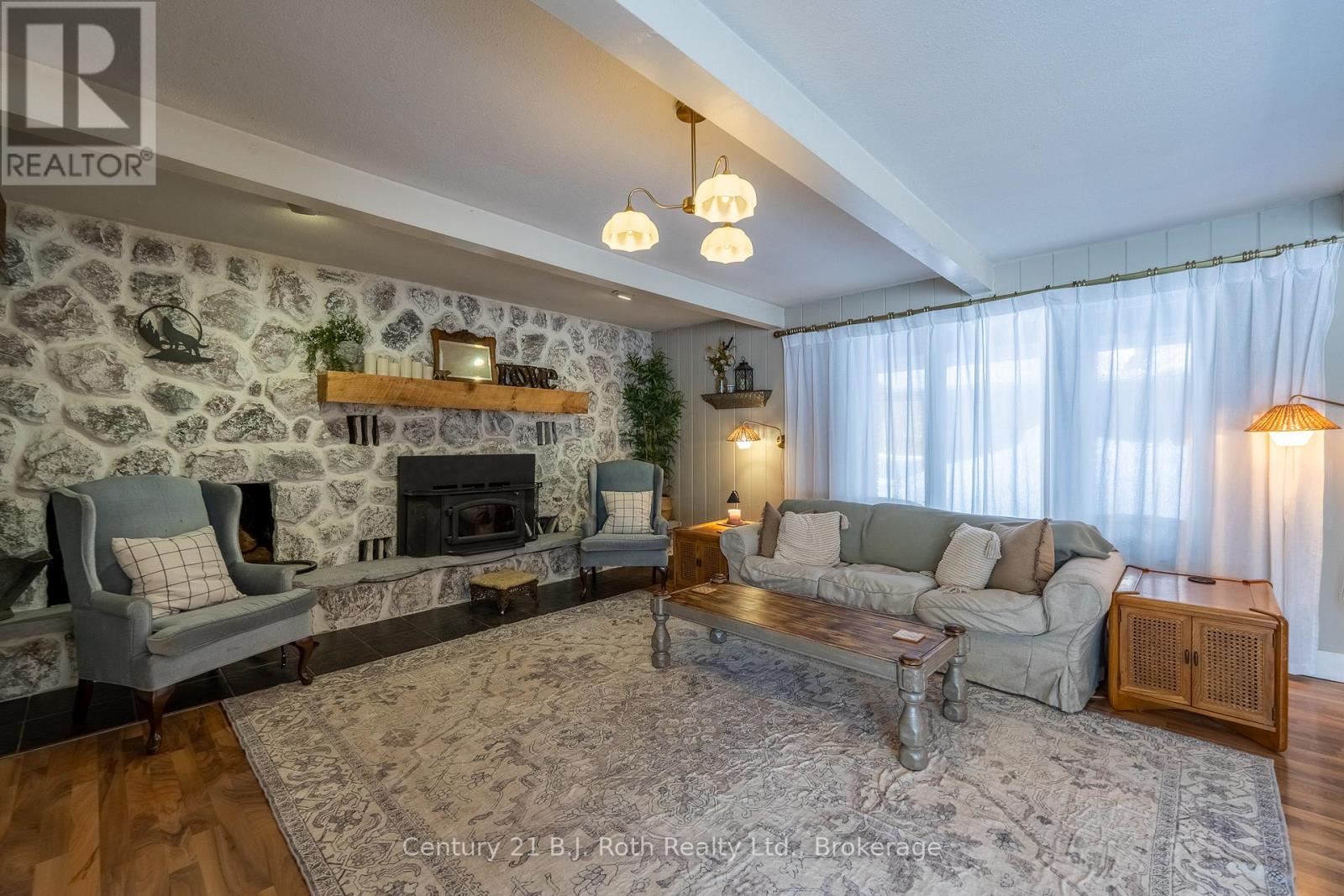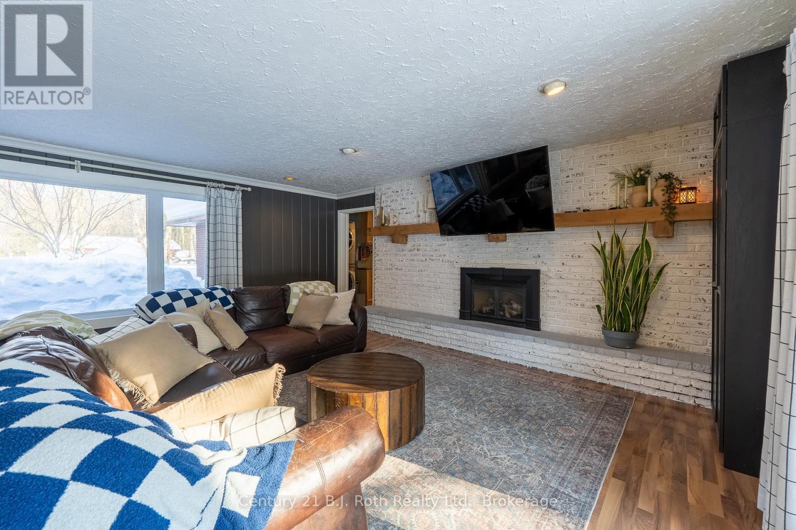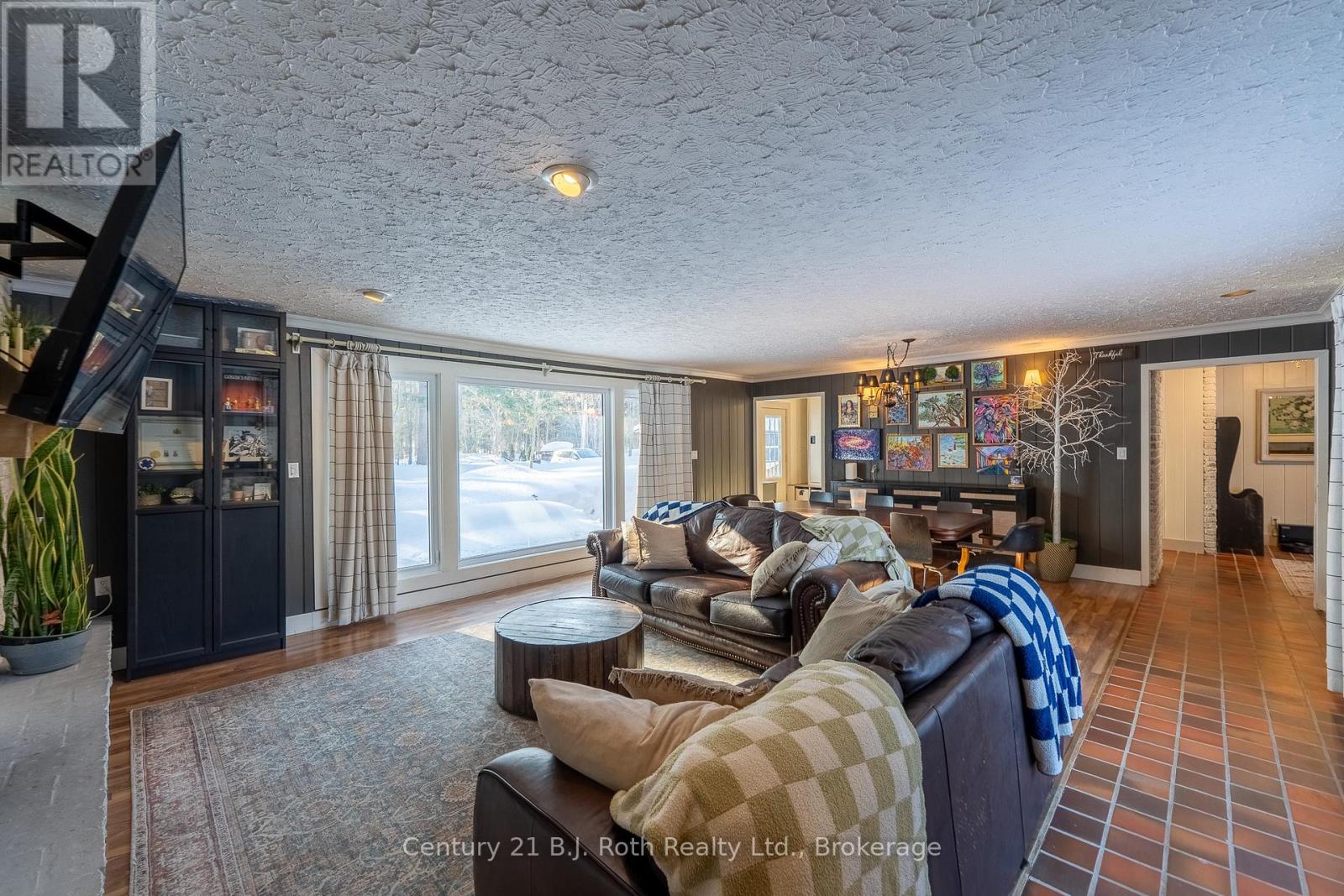 Tucked well back from the road this classic 1970's brick ranch offers nearly 2 acres of privacy in the heart of the highly sought-after Marchmont/Bass Lake community. With over 2,700 sq. ft. of thoughtfully designed main floor living, this home was built for families who value space, connection, & comfort. From the moment you arrive, the covered arched entry & private unistone courtyard set the tone. Step inside to bright, welcoming foyers at both the front & rear of the home - practical for busy family life & ideal for entertaining. A convenient 2-pc powder rm & walk-in pantry/storage closet add everyday functionality. At the centre of the home, the open-concept kitchen, dining, & family rooms create a natural gathering place. The kitchen offers generous cabinetry, granite counters, stainless appliances, & ample prep space, all flowing seamlessly into the dining area & family room. The woodstove anchors the space, adding warmth & charm, while large windows draw in natural light. When it's time to unwind, the separate living room offers a quieter retreat, complete with oversized windows front & back & a cozy gas fireplace. The layout thoughtfully separates the living spaces from the private bedroom wing featuring 4 spacious bedrooms, incl. a Primary suite tucked at the rear of the home w/a walk-through closet, private 4-pc ensuite & walkout to unistone patio. A fully renovated 5-pc bathrm w/dble vanity, & main floor laundry add convenience where families need it most. Full basement under 1/2 the home w/Rec.rm. w/Gas FP, Storage/Utility rm. w/direct walk up access to the side yard. Backing onto township-owned open space, the yard feels endless; perfect for kids & pets! Detached 35'5" x 27' oversized double garage (with newly built roof) provides exceptional storage and workspace flexibility. 2 Gas Furnaces & central air units recently replaced. Minutes to amenities, in an excellent school district, & within one of Severn's most desirable areas. (id:4069)