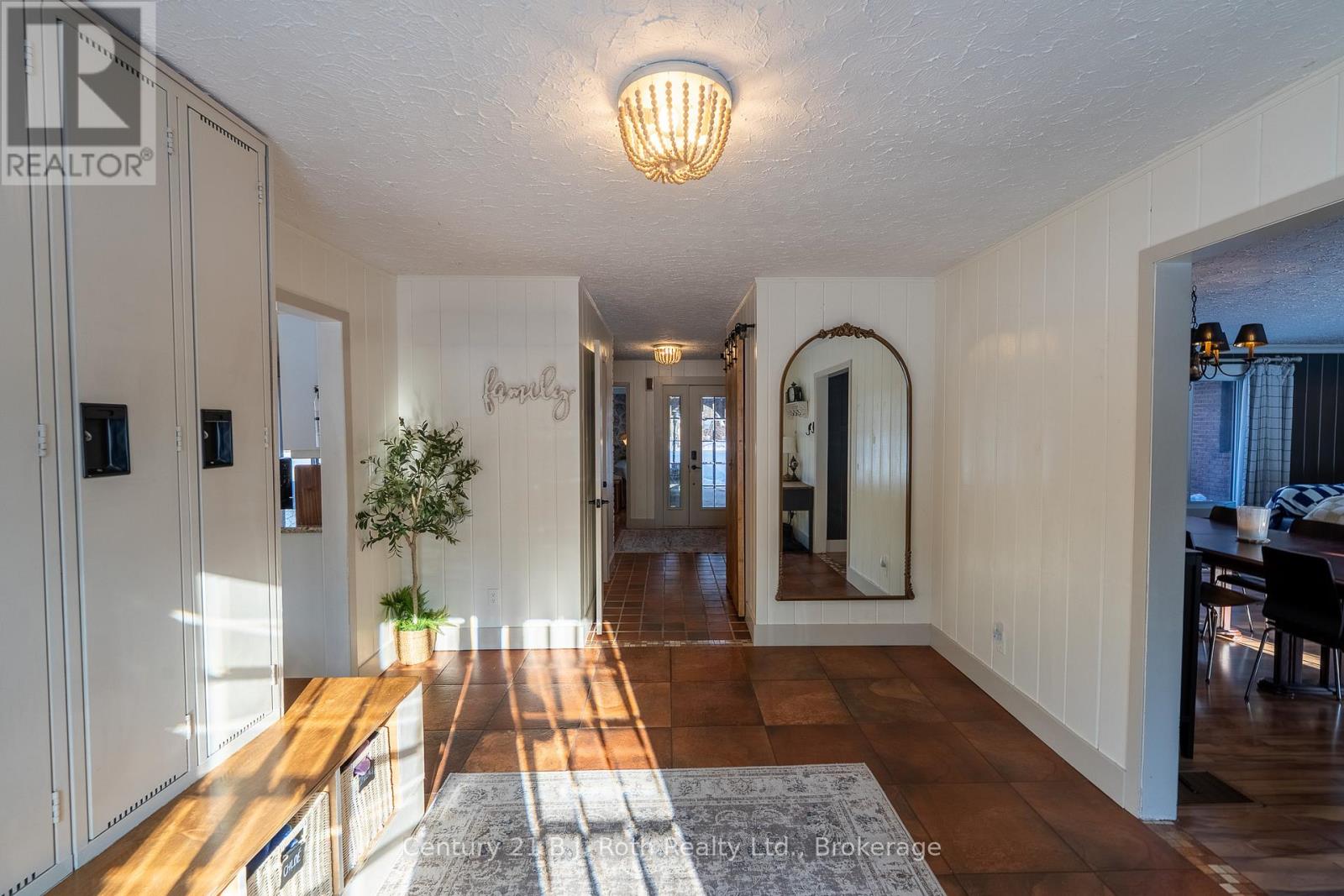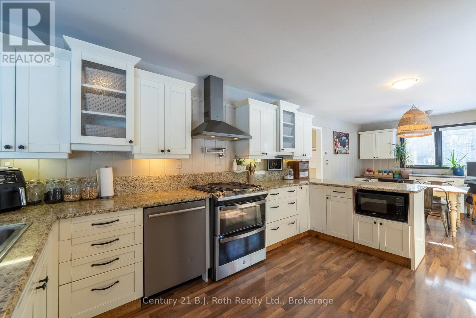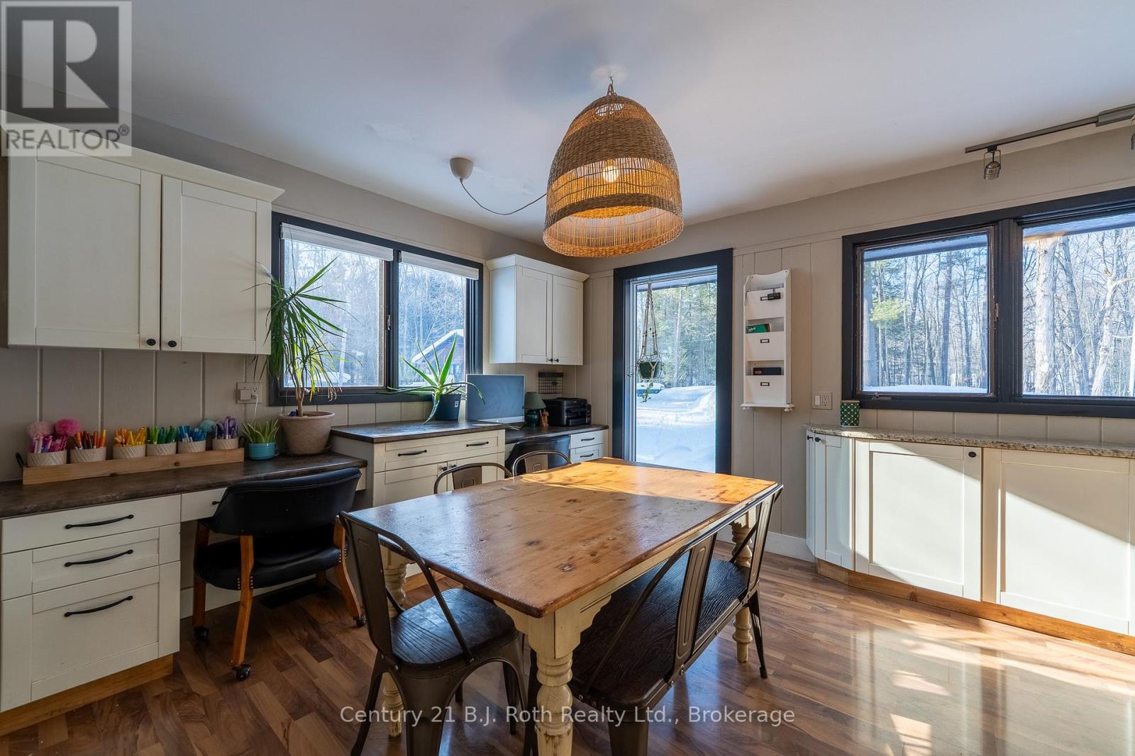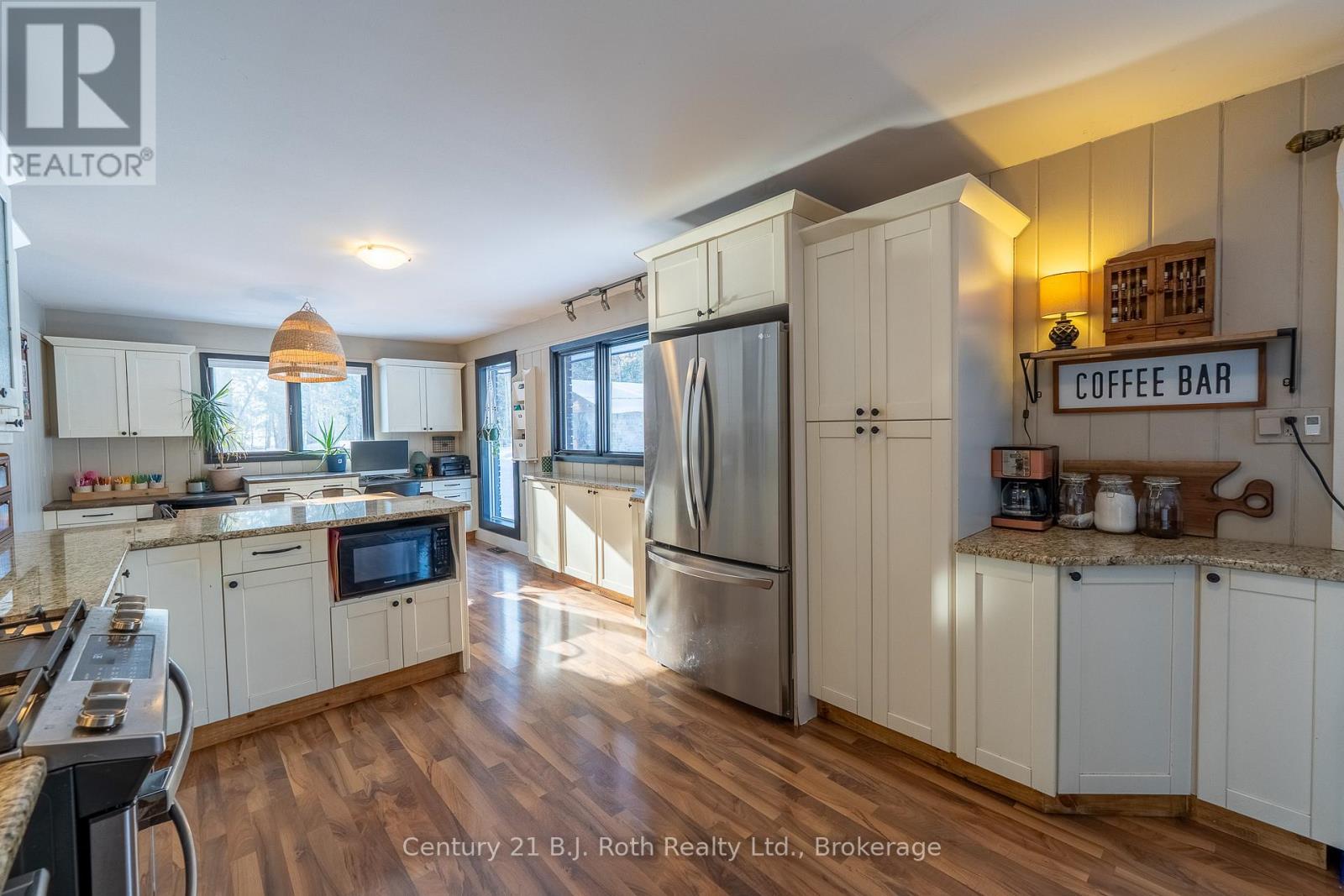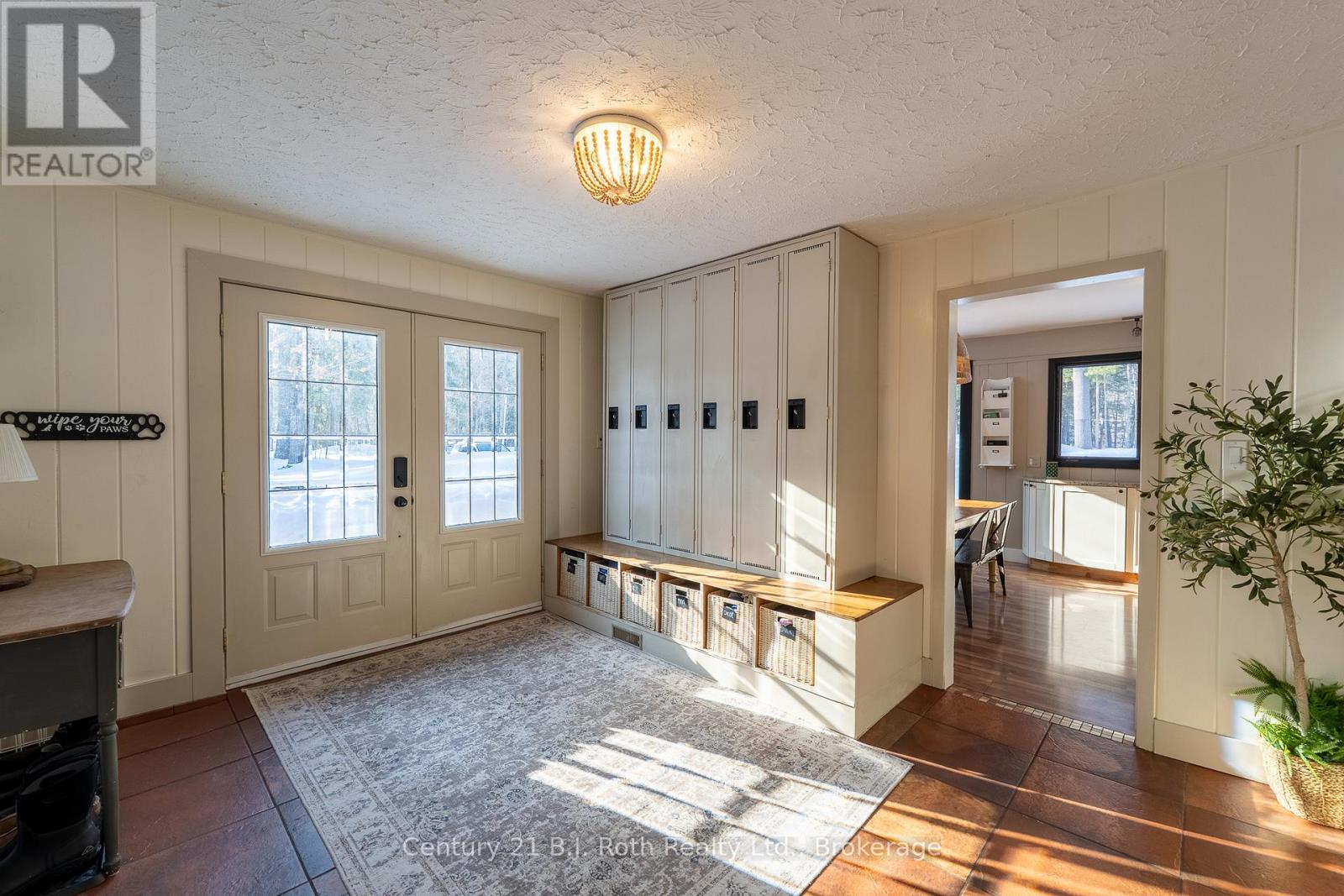 Tucked well back from the road this classic 1970's brick ranch offers nearly 2 acres of privacy in the heart of the highly sought-after Marchmont/Bass Lake community. With over 2,700 sq. ft. of thoughtfully designed main floor living, this home was built for families who value space, connection, & comfort. From the moment you arrive, the covered arched entry & private unistone courtyard set the tone. Step inside to bright, welcoming foyers at both the front & rear of the home - practical for busy family life & ideal for entertaining. A convenient 2-pc powder rm & walk-in pantry/storage closet add everyday functionality. At the centre of the home, the open-concept kitchen, dining, & family rooms create a natural gathering place. The kitchen offers generous cabinetry, granite counters, stainless appliances, & ample prep space, all flowing seamlessly into the dining area & family room. The woodstove anchors the space, adding warmth & charm, while large windows draw in natural light. When it's time to unwind, the separate living room offers a quieter retreat, complete with oversized windows front & back & a cozy gas fireplace. The layout thoughtfully separates the living spaces from the private bedroom wing featuring 4 spacious bedrooms, incl. a Primary suite tucked at the rear of the home w/a walk-through closet, private 4-pc ensuite & walkout to unistone patio. A fully renovated 5-pc bathrm w/dble vanity, & main floor laundry add convenience where families need it most. Full basement under 1/2 the home w/Rec.rm. w/Gas FP, Storage/Utility rm. w/direct walk up access to the side yard. Backing onto township-owned open space, the yard feels endless; perfect for kids & pets! Detached 35'5" x 27' oversized double garage (with newly built roof) provides exceptional storage and workspace flexibility. 2 Gas Furnaces & central air units recently replaced. Minutes to amenities, in an excellent school district, & within one of Severn's most desirable areas. (id:4069)